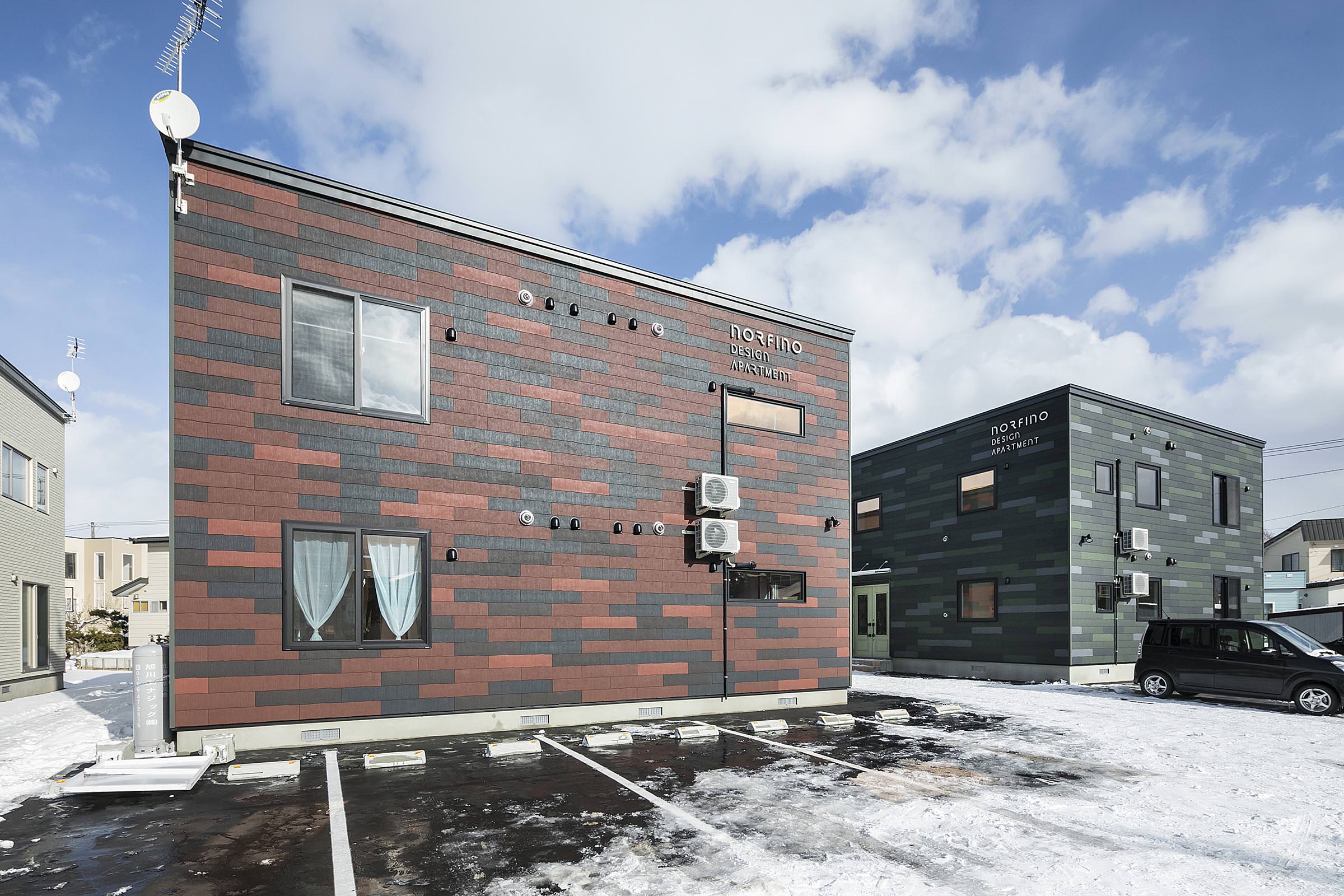 向かい合わせの2棟建て。